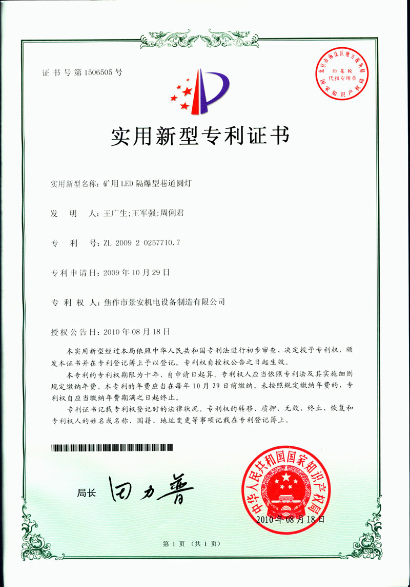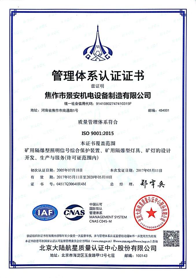 焦作市景安機電設備制造有限公司(原焦作市無線電一廠),是國家重點生產礦用防爆電子電器產品的專業企業,全國煤炭行業機電產品定點生產單位,中國電器工業協會防爆電氣分會理事,市級礦用隔爆型工程技術中心,公司占地30000平方米,廠房10000平方米,ISO9001:2008質量管理體系和A級計量認證企業。 焦作景安公司始終堅持“以科技為先導,以市場為導向”的發展戰略,不斷進行新產品的研制和開發,在國家“六五”到“九五”期間,承擔和參與了國家多項科技攻關項目。并被中國電器工業協會評定為“質量可信產品”。特別是在礦用防爆燈領域,礦用隔爆型半導體(LED)照明燈具,2008年列入國家火炬計劃,獲2009年河南省工業和信息化廳的科技成果二等獎,并擁有多項國家專利。